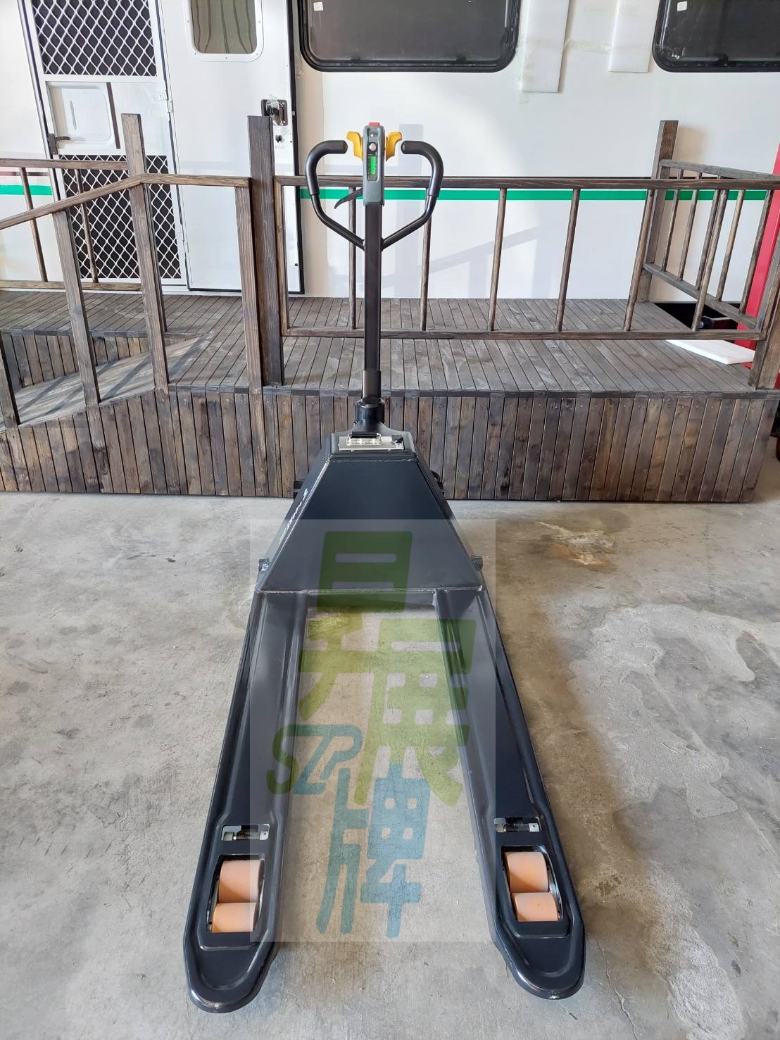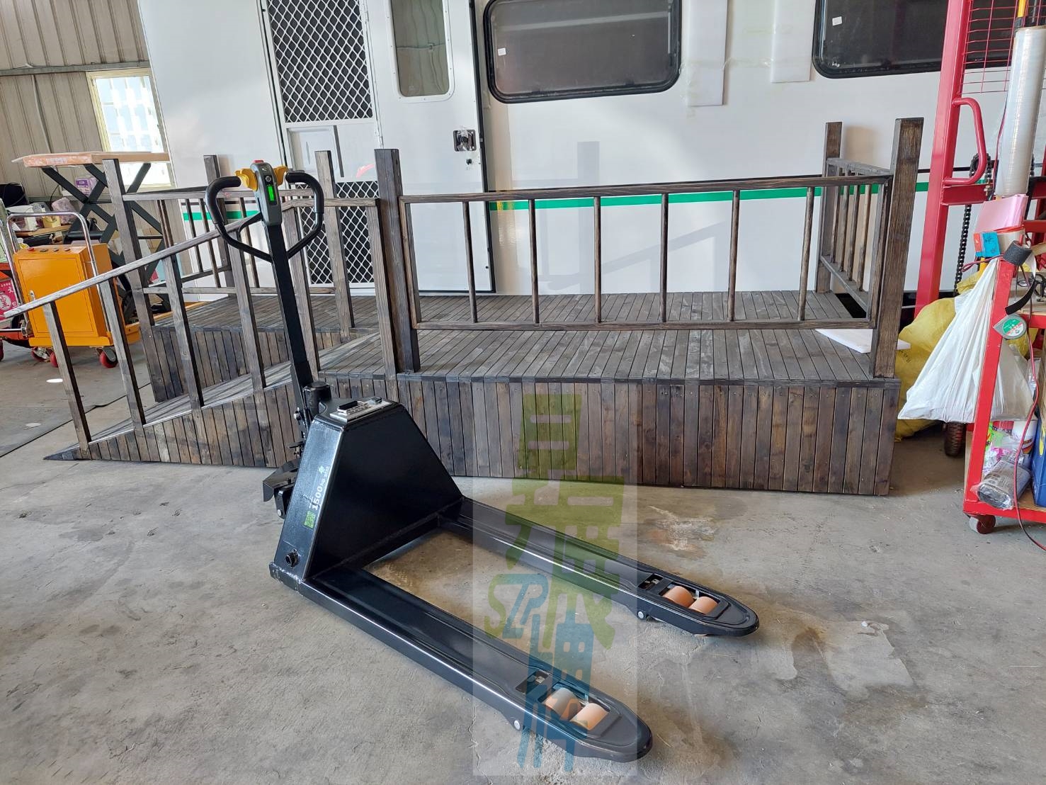 商品名稱:鋰電款全電動油壓拖板車標準載重:1.5噸.貨叉尺寸:(寬685*長1220mm)