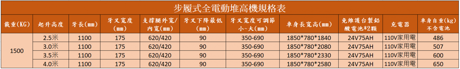 輕便靈活上下貨物好操控.行走電動上升電動.下降採無級調速安全緩和.鑰匙鎖.液晶顯示電量表.前進後退快速切換龜速功能.可訂製各種尺寸