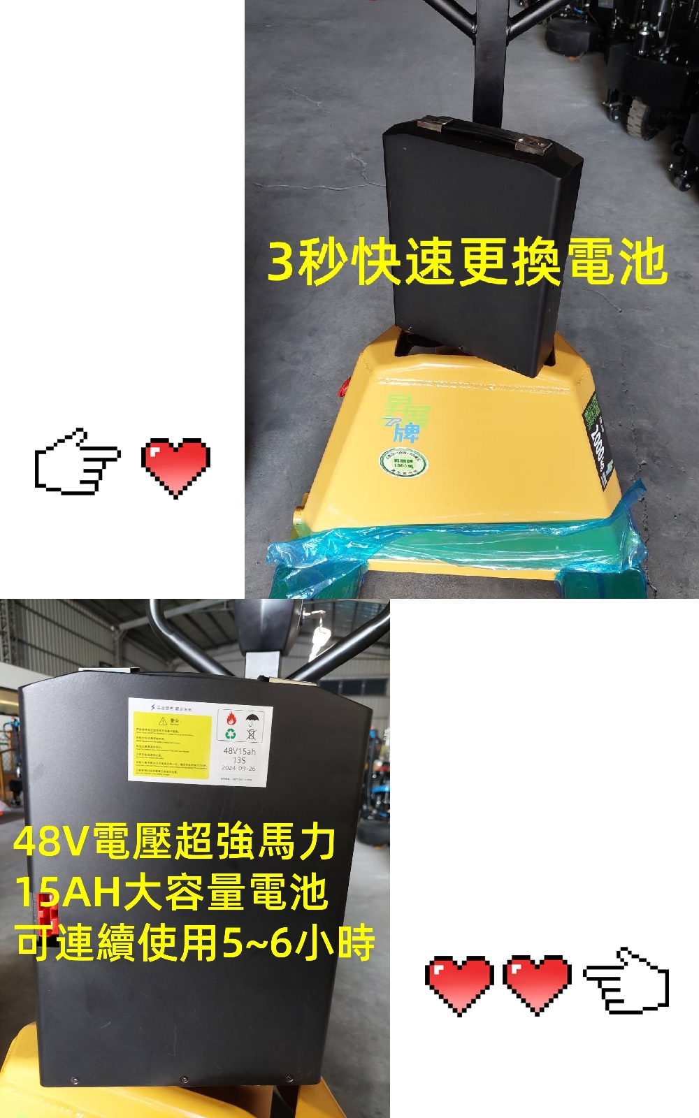 1組充電器(5A快充)+1顆鋰電池(48V15AH) 48V電壓省電有力.千萬別買到24V的電壓.耗電又沒力 剩下20%電量.充飽電約3-4小時.滿電可連續不間斷使用4-5小時