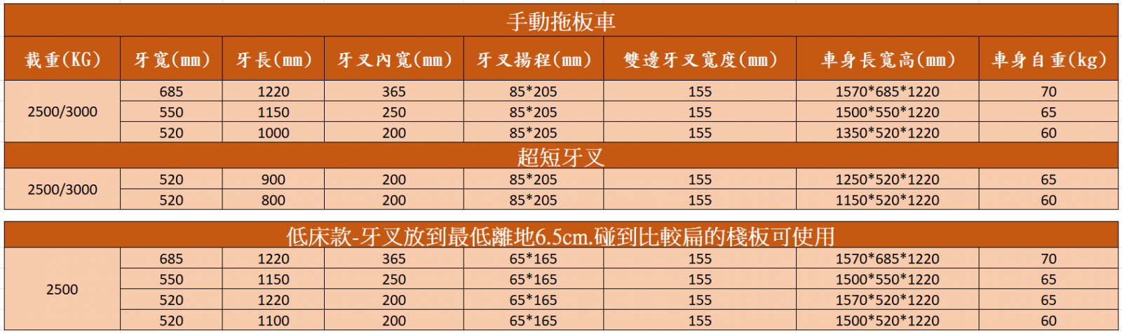 (可針對較低的棧板,可選用低床車型牙面離地面僅6.5公分)