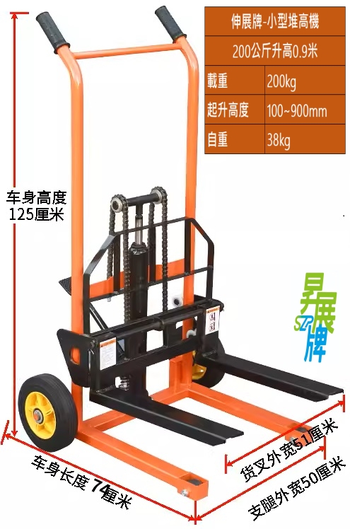 手動堆高機-輕便款-迷你款-大小台都有.各種尺寸都可訂製.牙叉可依客戶需求訂製多種類型.車體使用PU烤漆 不易生鏽 下降速度可控制依照閥門大小控制 增加作業安全