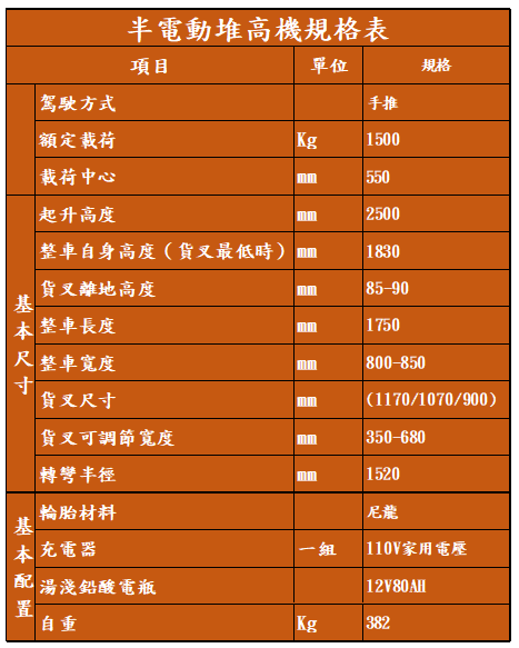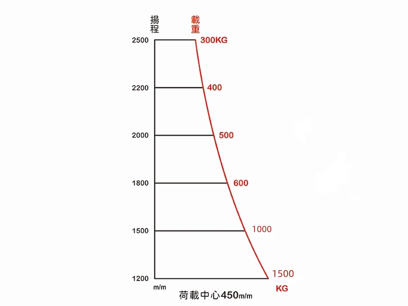 揚程載重比率.揚程高度越高.堆高機承載的重量需要隨著高度遞減。